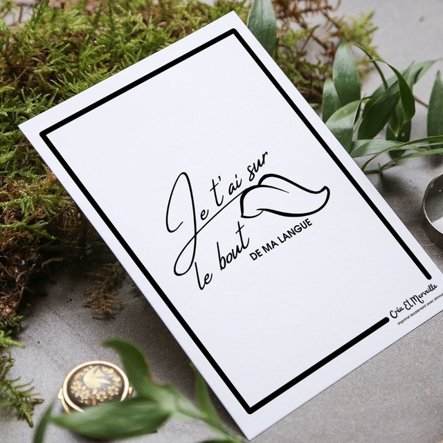 La carte postale Bout de ma langue 👅 est une carte format classique : 10 x 15cm.