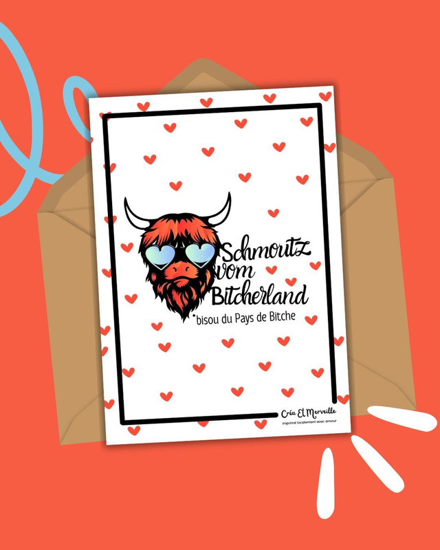 La carte postale Schmoutz Bitcherland 😁 est une carte format classique : 10 x 15cm.