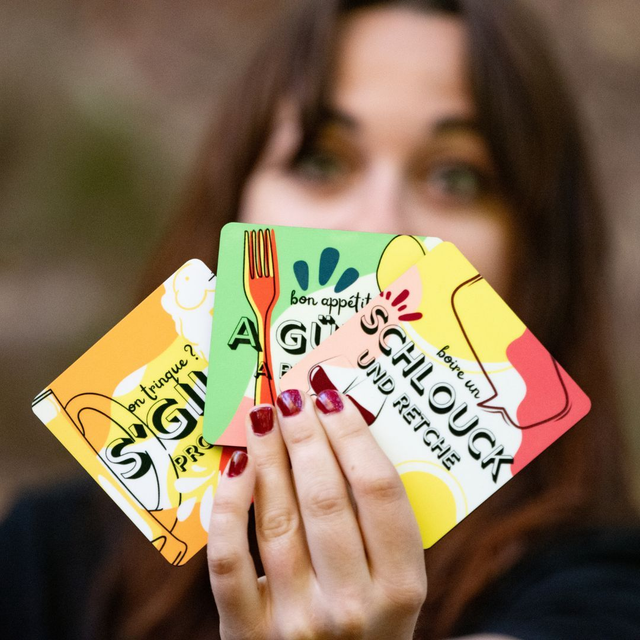 Boire un schlouck entre amis ! Manger un bout et se souhaiter A güter ! Trinquer et s'gilt !