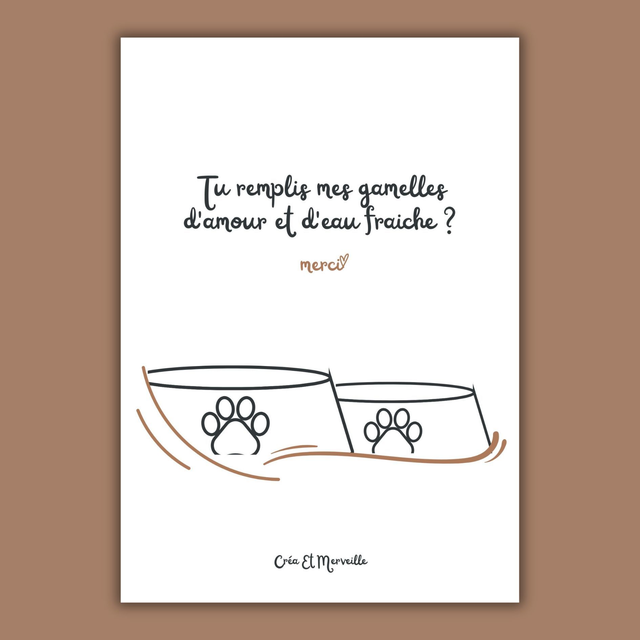 L'affiche Gamelles dâamour đŸ Une affiche pleine dâhumour et de tendresse Ă poser prĂšs des gamelles de vos boules de poils. Parce que leur appĂ©tit, câest aussi beaucoup dâamour !